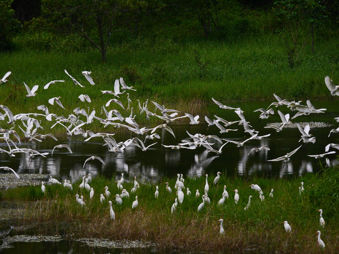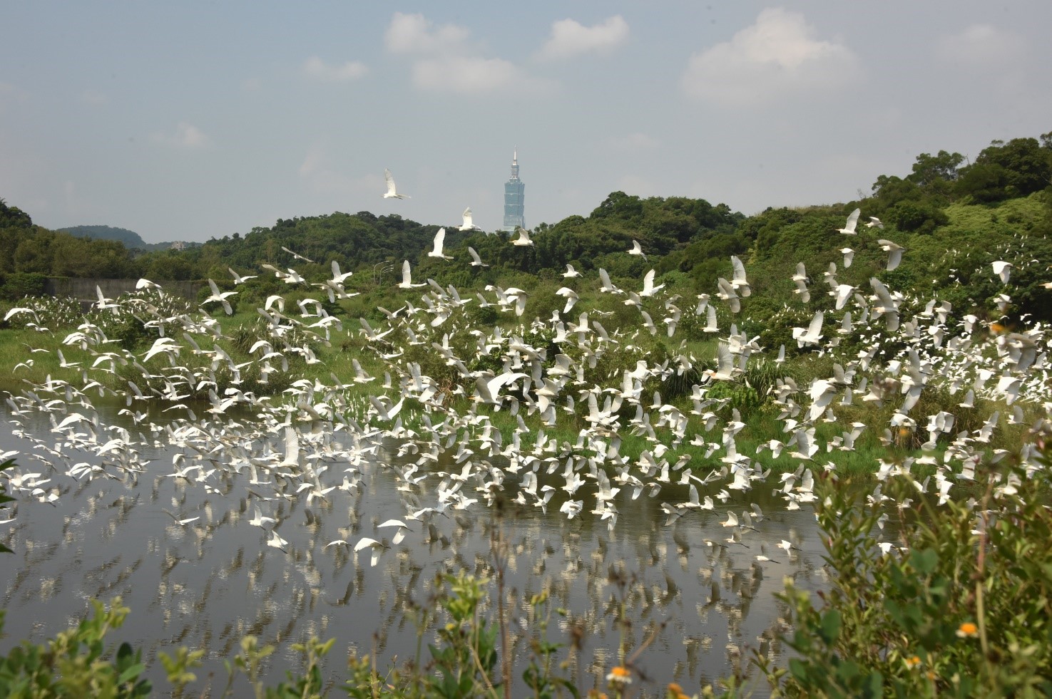 白冠雞、高蹺鴴、小鸊鷉(左至右)